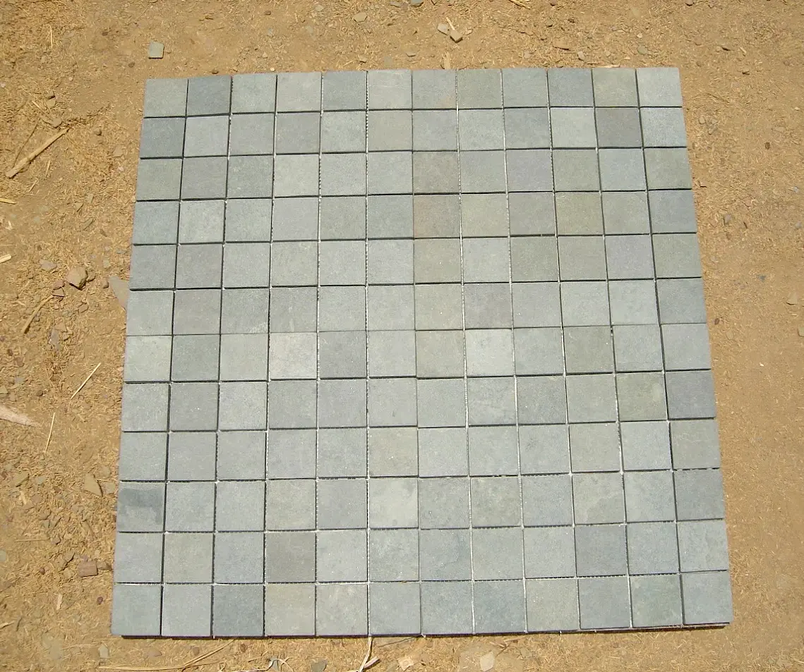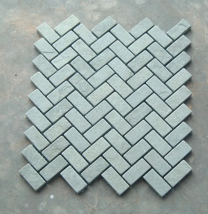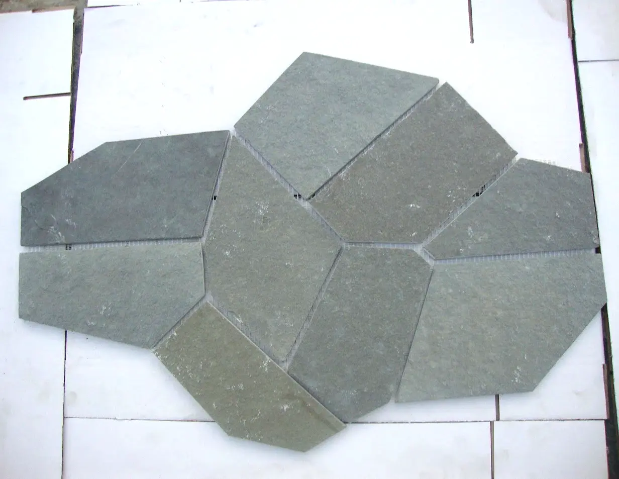 Macherla Green Slate (M. Green) is a subtle, light green natural stone favored for its consistent color and uniform texture. Unlike its rustic counterpart, this slate offers a clean, moderately riven surface that adds a sophisticated natural beauty without heavy variations. Its toughness and anti-skid properties make it an excellent choice for high-traffic areas like hotels, restaurants, and public parks.